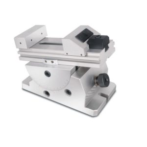étau d’outilleur avec base orientable 2 axes pour fraisage léger, edm, rectification et gravure. acier trempé 60 hrc, mors de 70 mm, capacité de serrage 0~80 mm, inclinaison 0-45°, rotation 360°. lecture des angles sur vernier. modèles avec mandrin ou porte-pinces disponibles.
